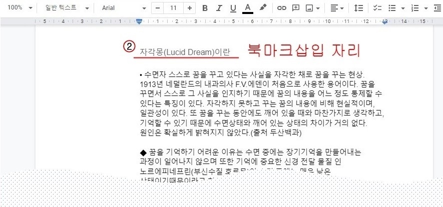 - ②번 부분의 표시된 위치에 북마크를 만들고