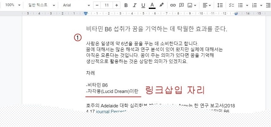 아래 이미지의 구글 문서를 예로 들겠습니다.