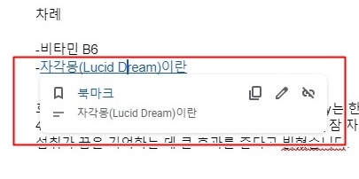 구글 문서의 북마크, 링크는 원하는 위치의 하이퍼 링크를 사용합니다.