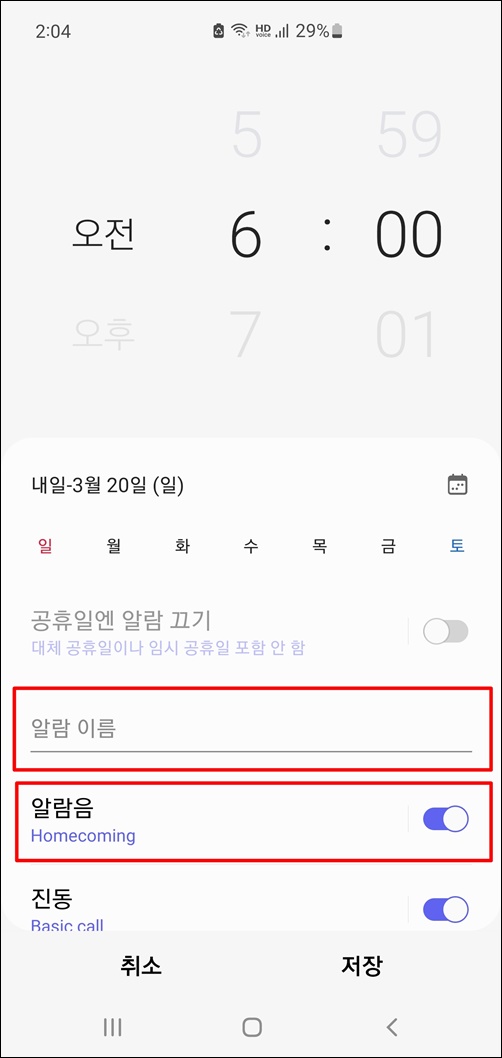 ▶ 벨소리 및 시간 및 알람이름 소리로 읽어주기 지정