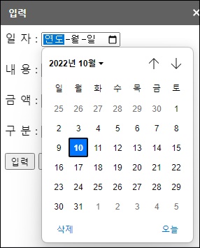 - 1번 부분은 일자 입력부분은 아래 이미지와 같이 날짜 형식으로 입력될 수 있도록 <input type="date"> 속성을 추가했습니다.